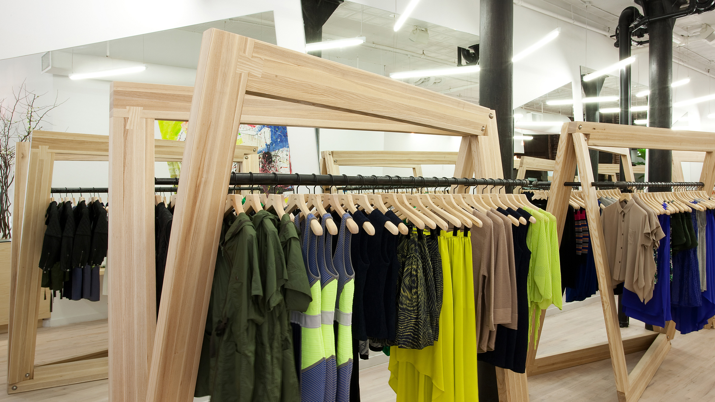 Building on the success of his eponymous line, fashion designer Yigal Azrouël launched his playfully edgy women’s clothing label Cut25 in 2010. To play off of the collection’s varied textures and body-conscious silhouettes, Dror created a retail environment featuring an angular, geometric installation occupying 1,400 square feet of space in SoHo.